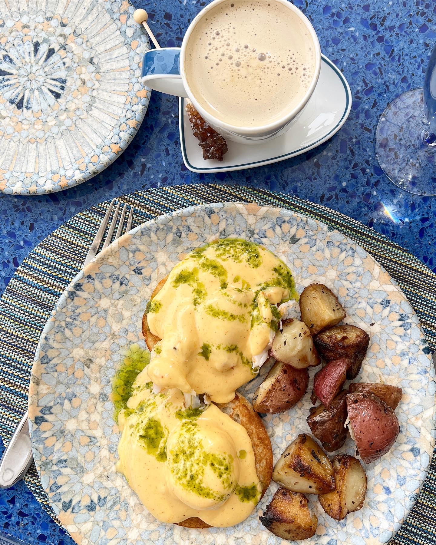 The balcony is a small but beautifully appointed space filled with vibrant blues that dance against the watery backdrop. I dream of another brunch here. I scheme of another brunch here. If you get the chance, don’t miss this.