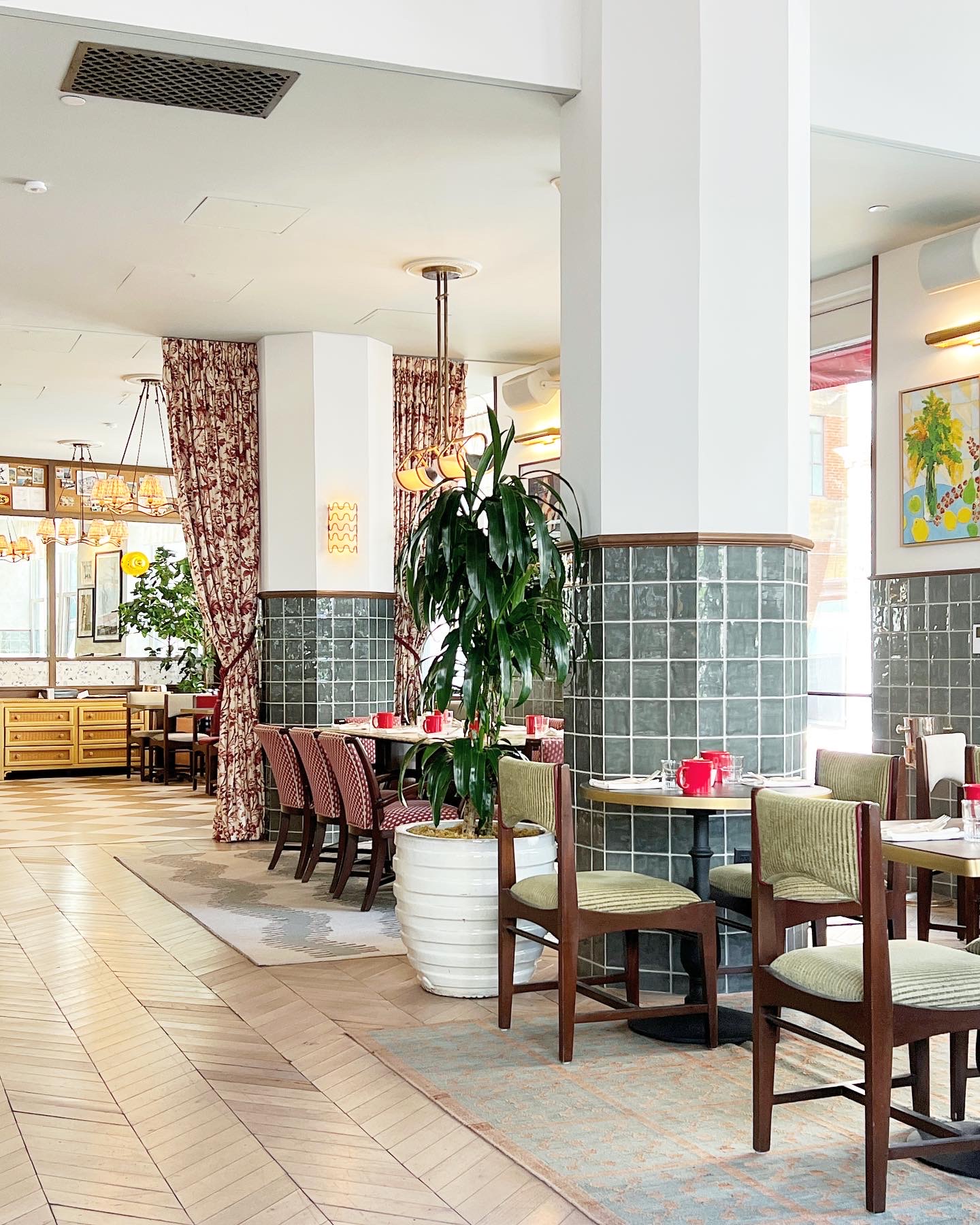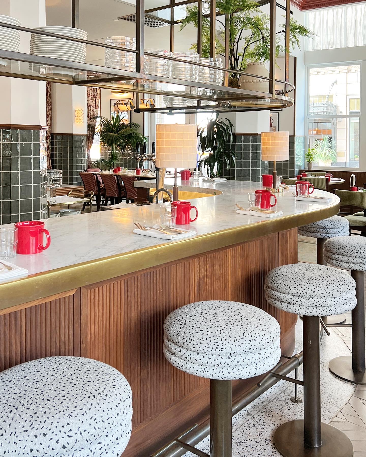 However, let’s not lose sight of the interior. As with other Hoxton hotels and restaurants, this space was designed by the talented AIME Studios. An incredible mix of textures and an impressively wide color palette come together seamlessly all the while softened by an enormous flood of natural light through the parade of windows.