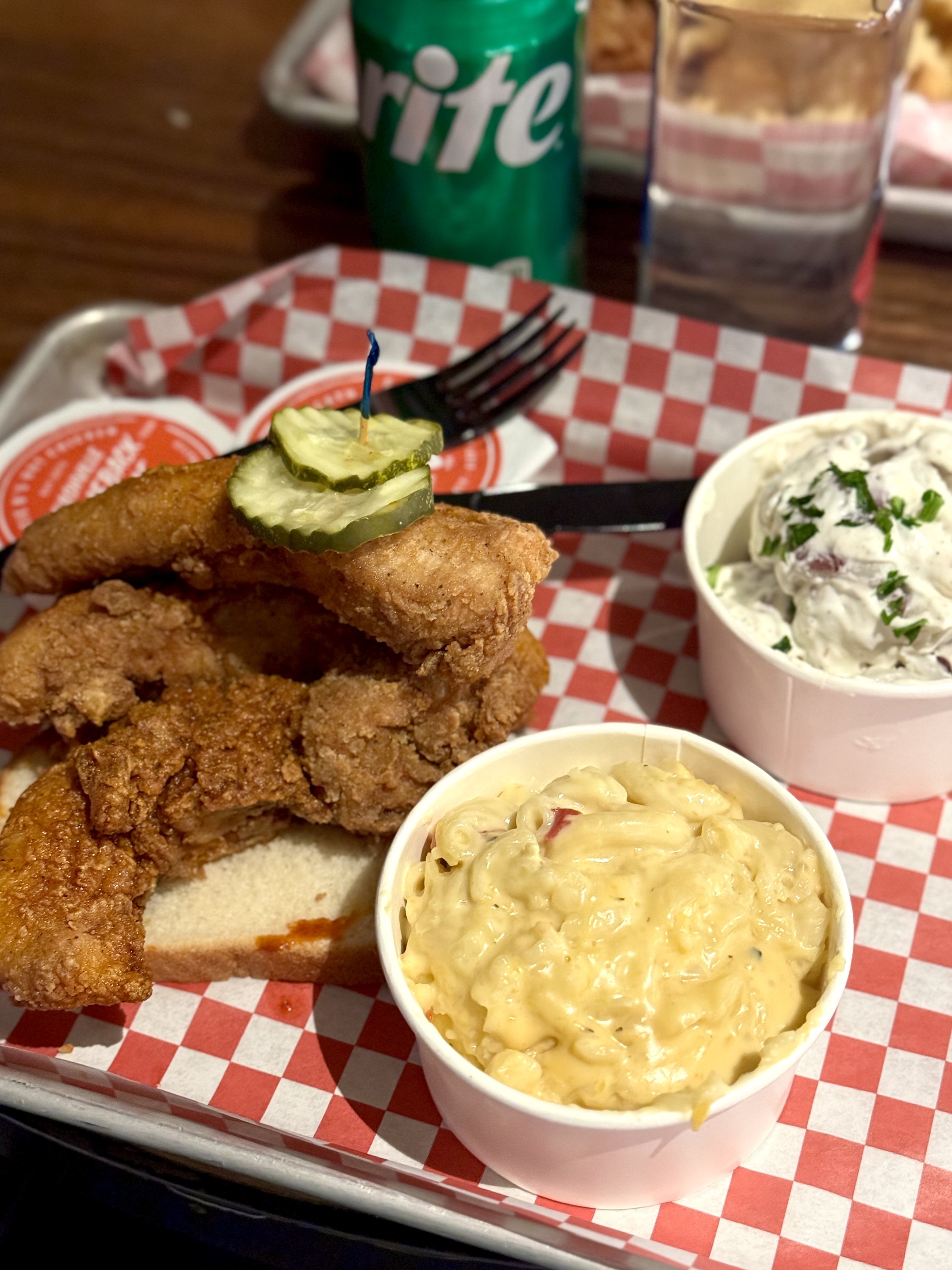 We grabbed lunch from Nashville staple Hattie B’s known for their unbelievably hot chicken. Having learned our lesson on a previous trip to Nashville, we behaved and ordered the mild. The cooling potato salad is a winner paired with any heat level!