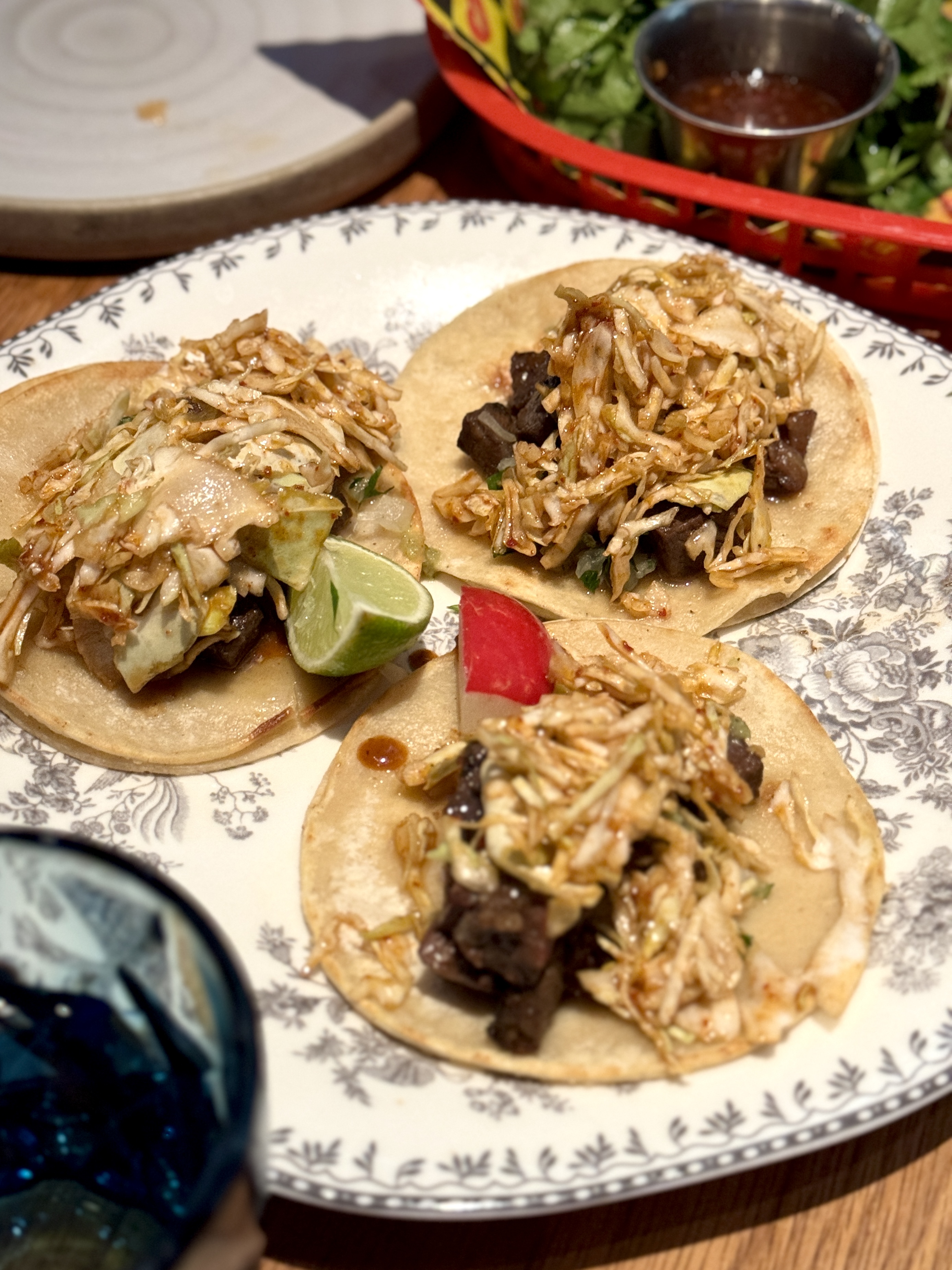 For our mains, my husband ordered the short rib tacos while I opted for kimchi carbonara.