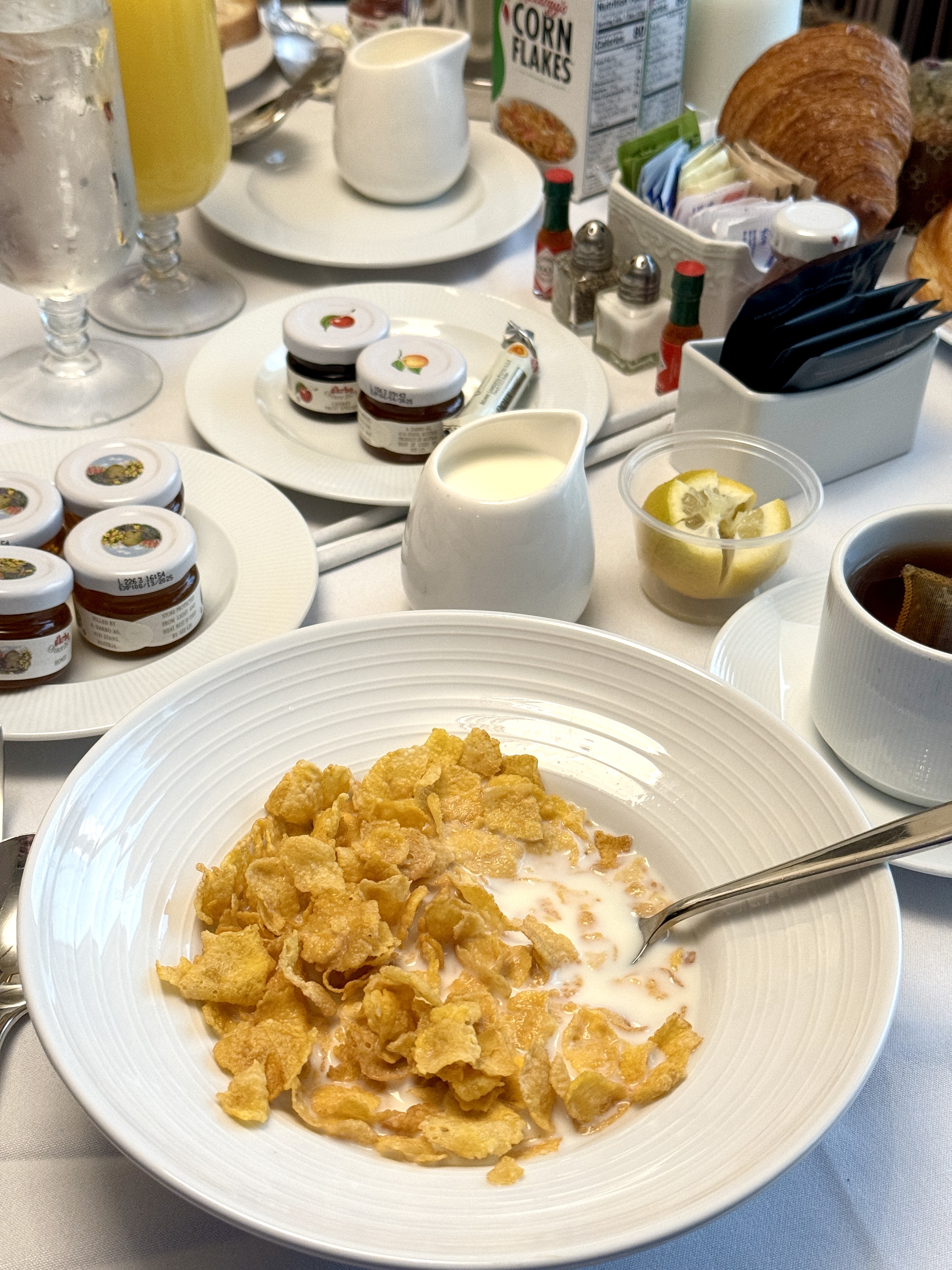 On Wednesday, we enjoyed one of life’s finest indulgences: room service. Nothing feels quite like waking up nestled in a fluffy bedspread and ordering in. The Venetian does it up big with white tablecloths, starched napkins, and fancy rolled butter.