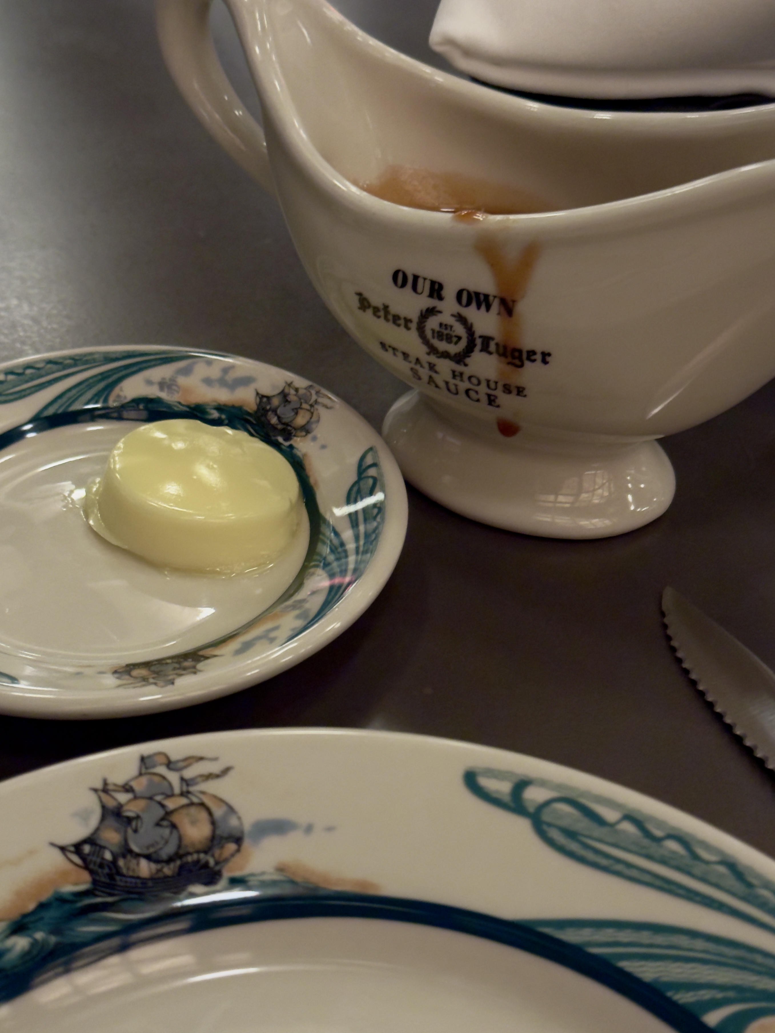 As evening fell, the recently opened Peter Luger in Caesars Palace was enough to lure us out. The original location in New York is legendary, an institution famous for their dry aging process.