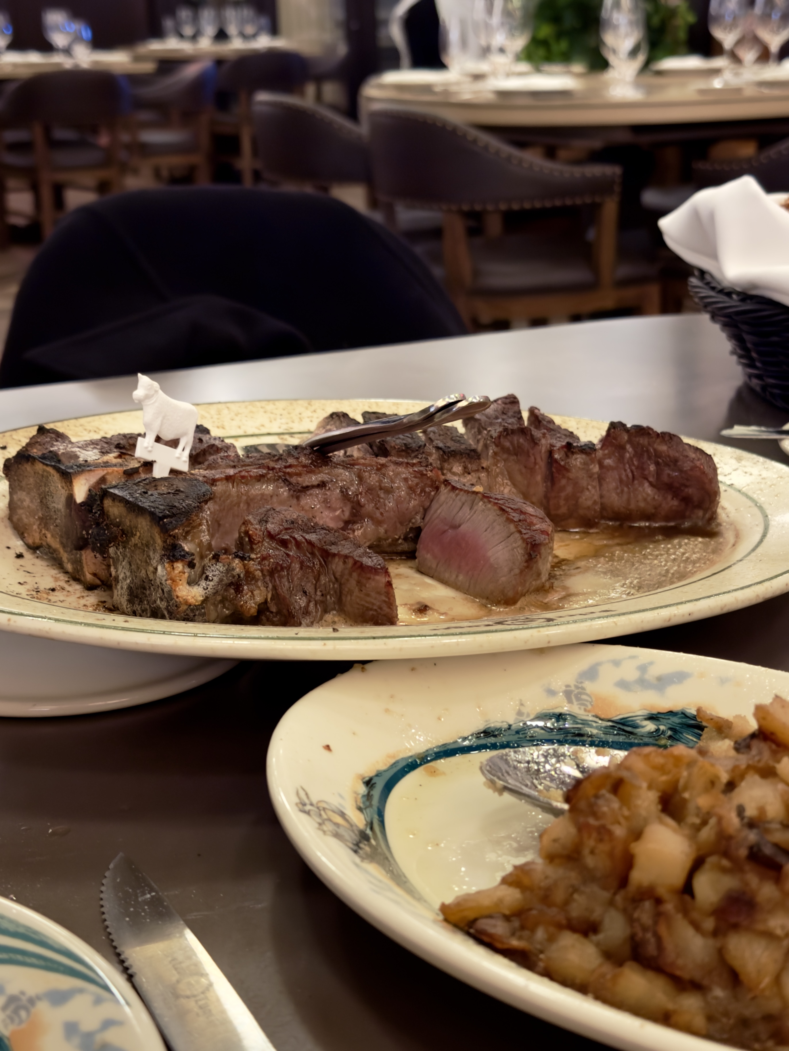 Rather than offering different cuts, the steak at Peter Luger is ordered by the number of people in your party. A sizzling masterpiece then arrives at your table with waiters hovering and expertly serving. Split by an enormous bone, one side is filet mignon while the other is ribeye.