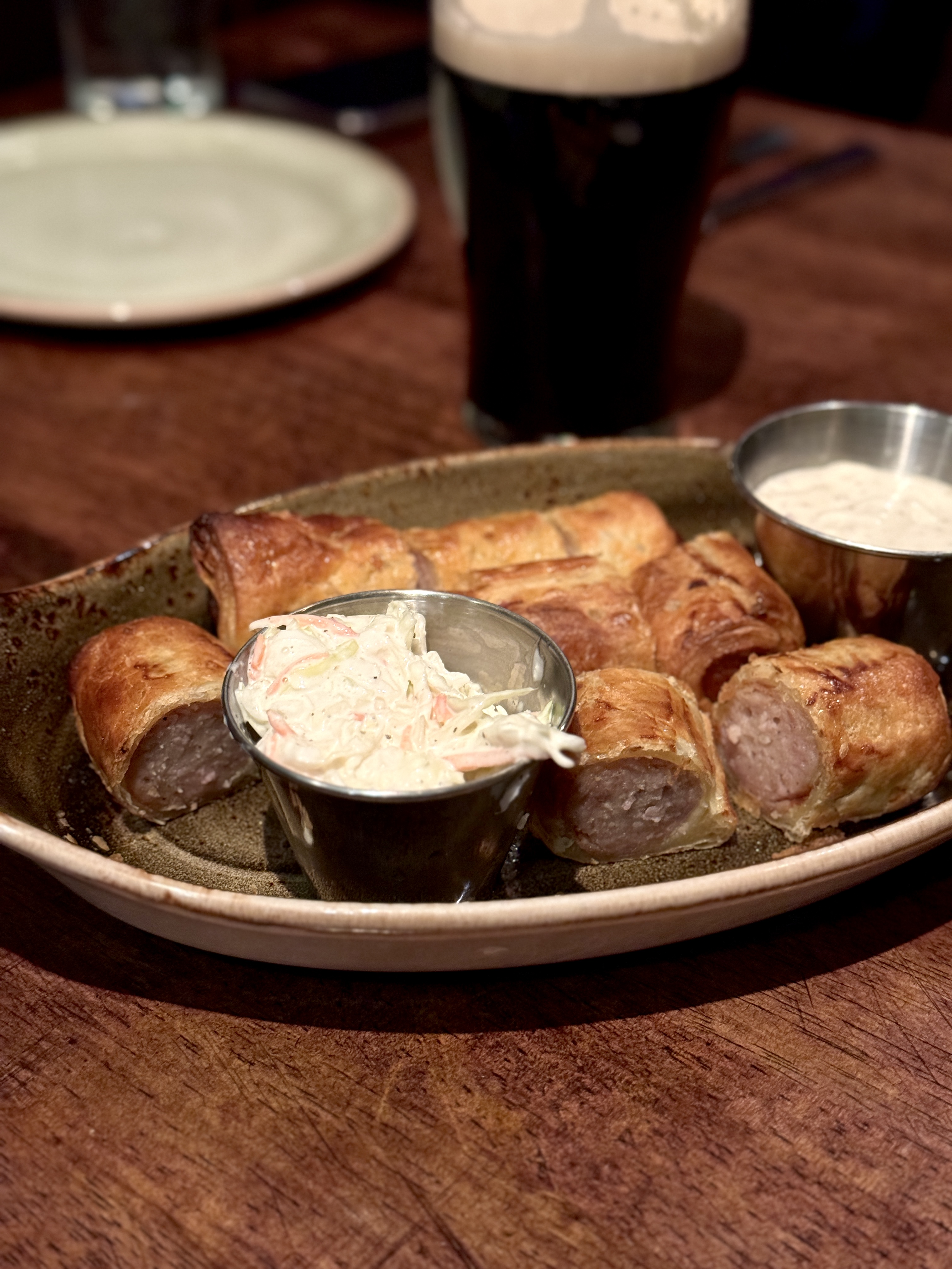 We kicked things off with sausage rolls enveloped in a delicious puff pastry and served alongside coleslaw. Savory and tangy it set the tone for our dinner.