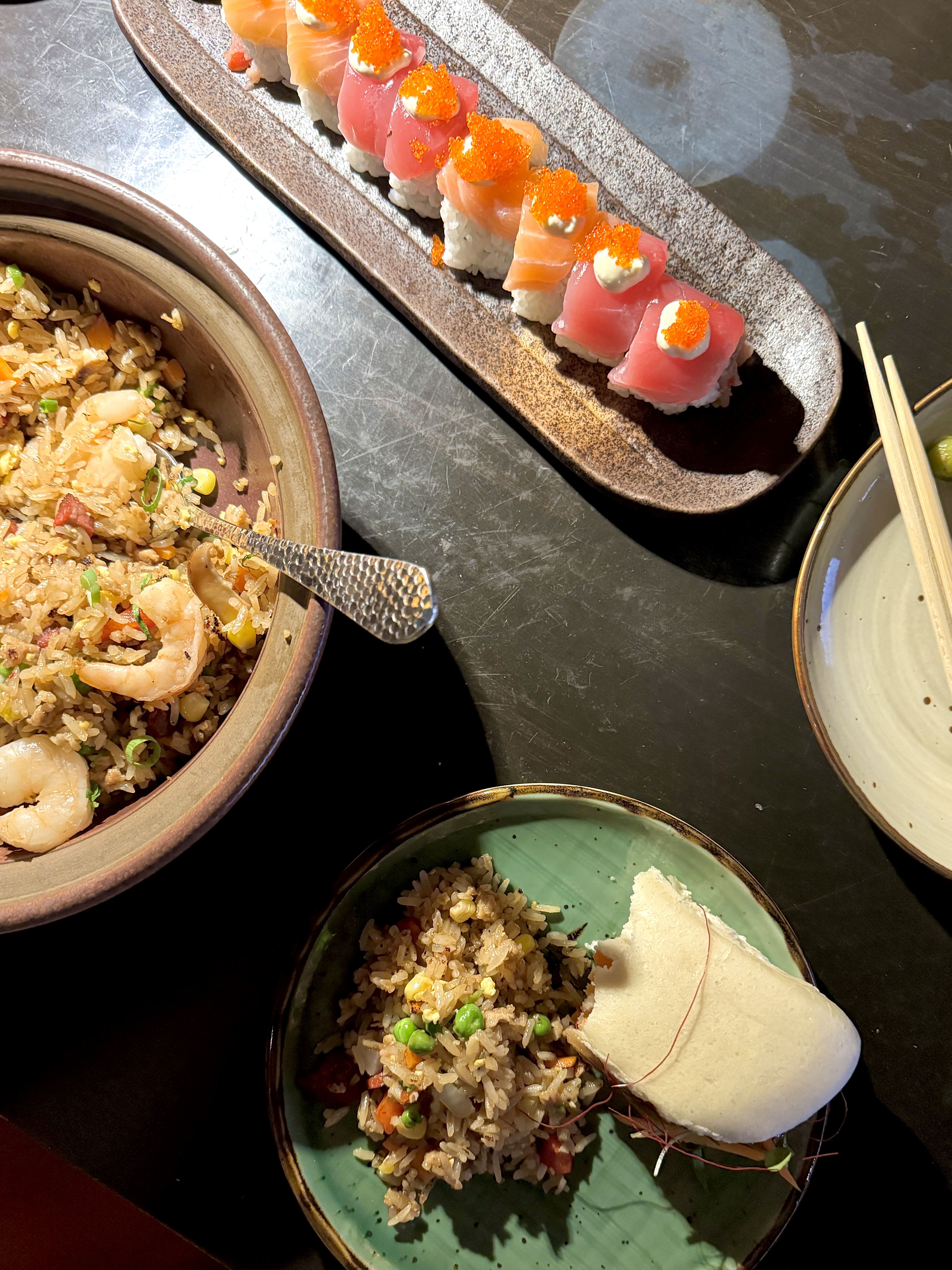 Top picks include Crispy Pork Belly Bao Buns, Japengo Fried Rice, and Cajun Seared Hamachi Sashimi but every dish we tried we liked.