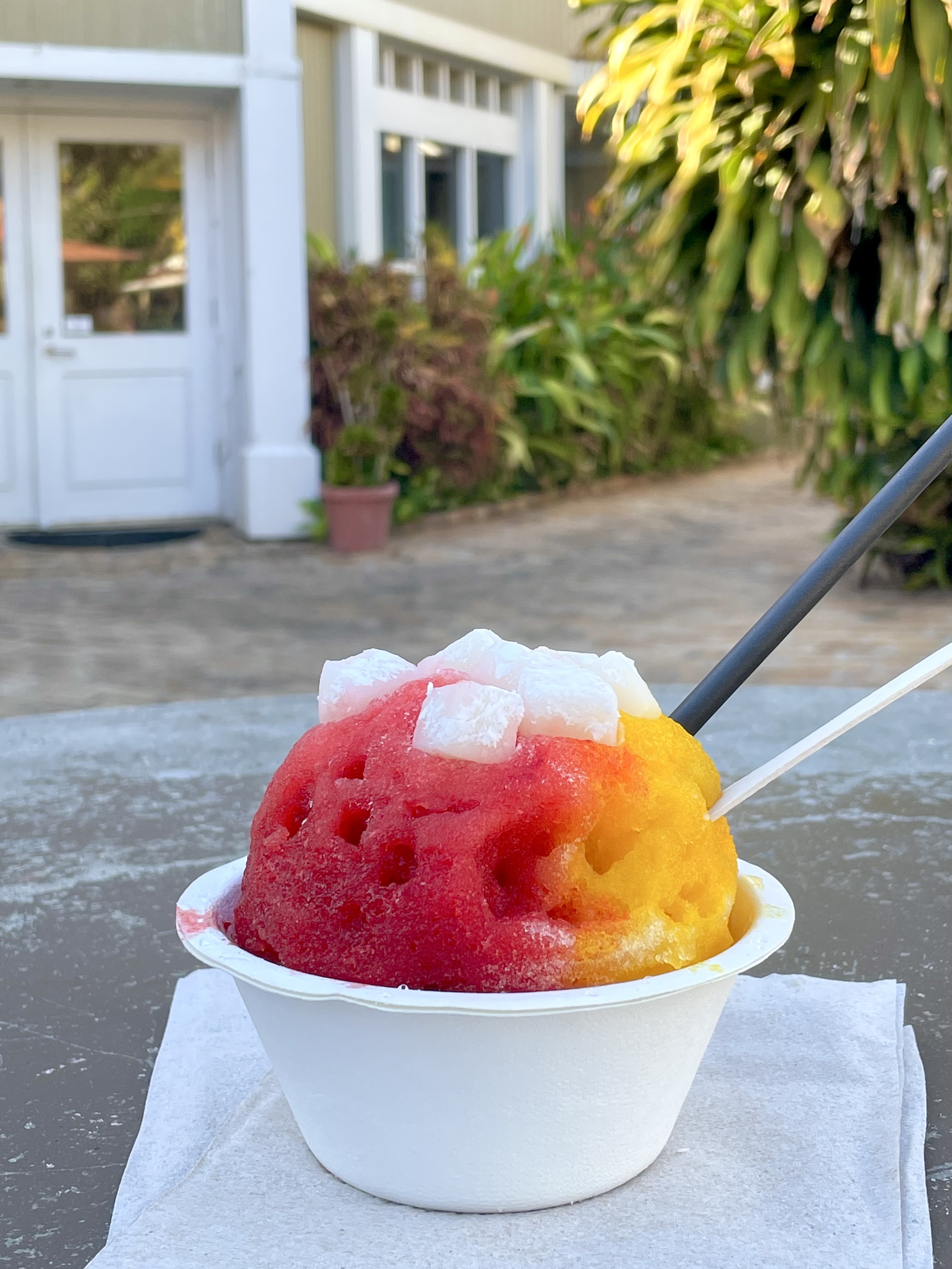 There are so many flavors and combinations but if you’ll indulge me, this is the best order: mac nut ice cream base, strawberry and pickled mango syrups, fresh mochi.