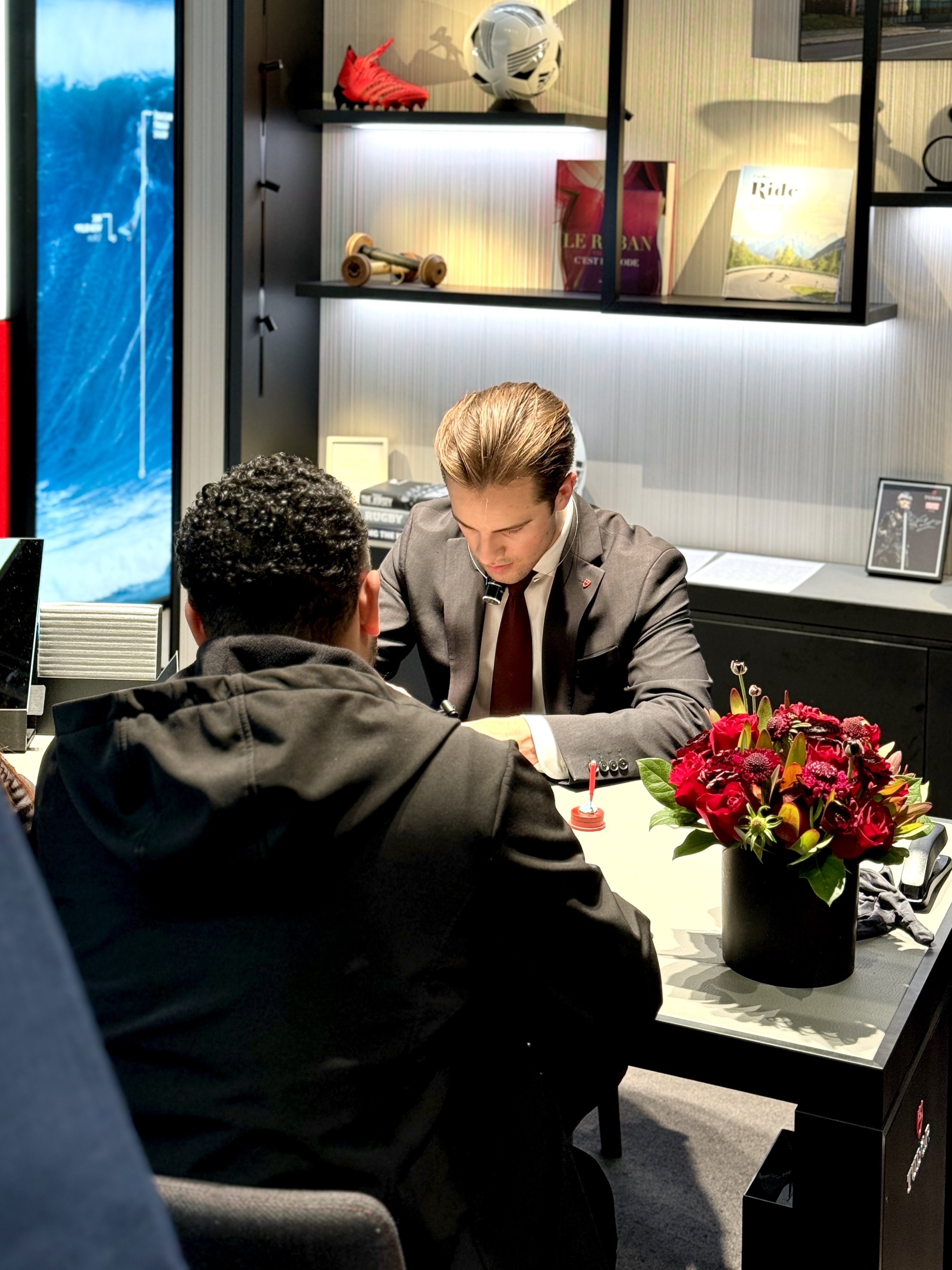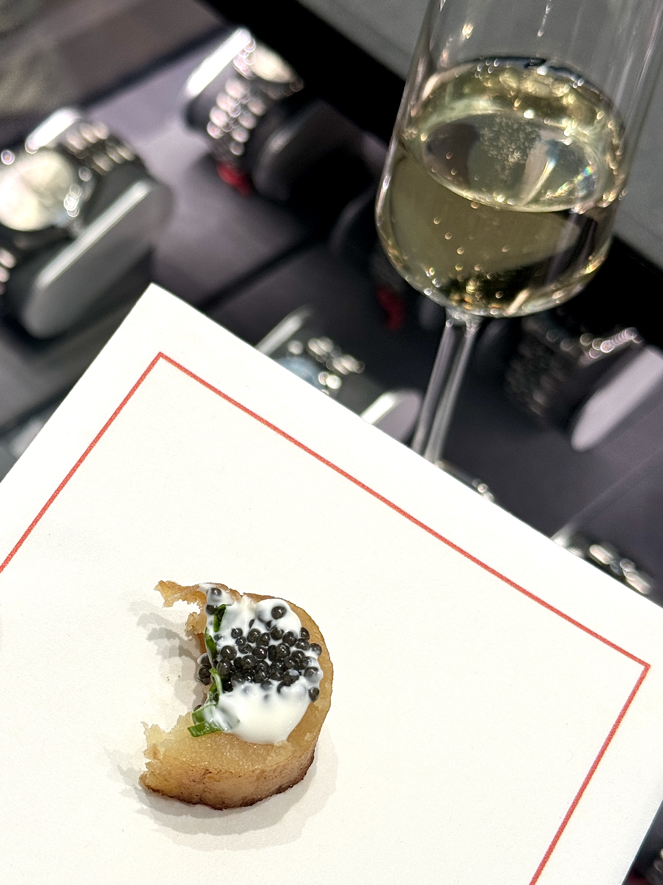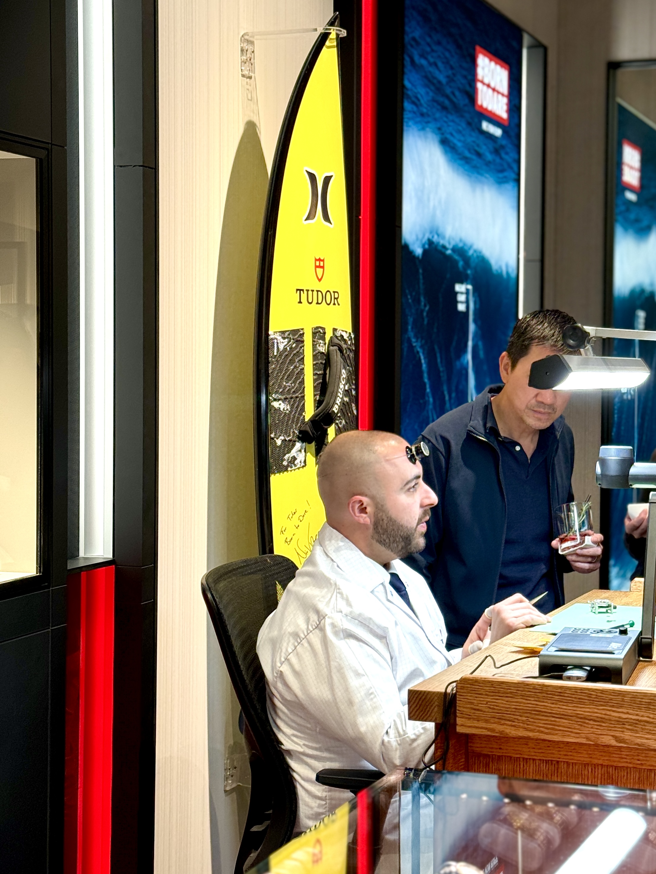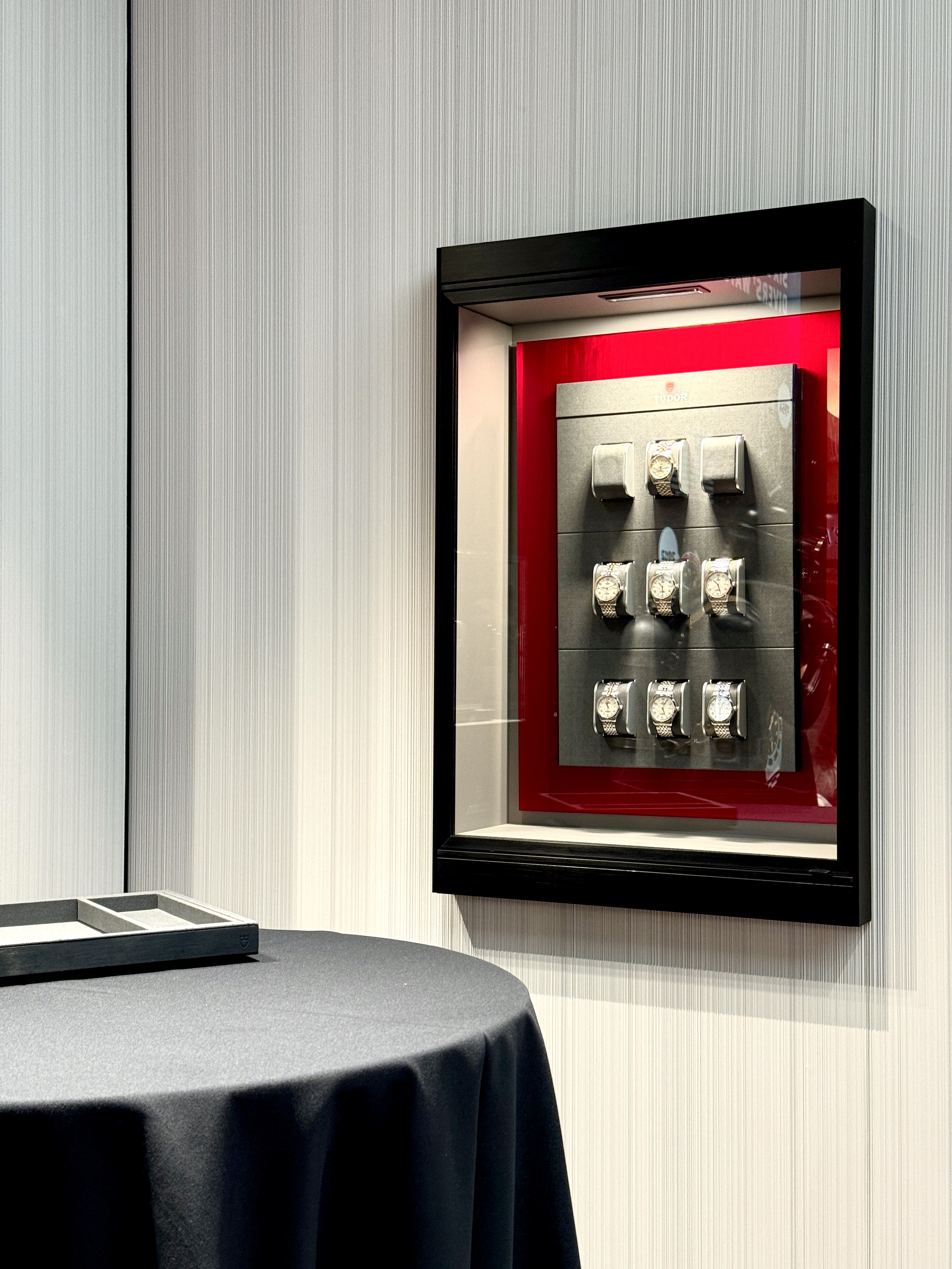 We were treated to a watchmaker working on pieces in real time (see what I did there?). He made himself available for questions to anyone who crowded in close, but the incredible artistry was also televised on the boutique’s screens so all could see.