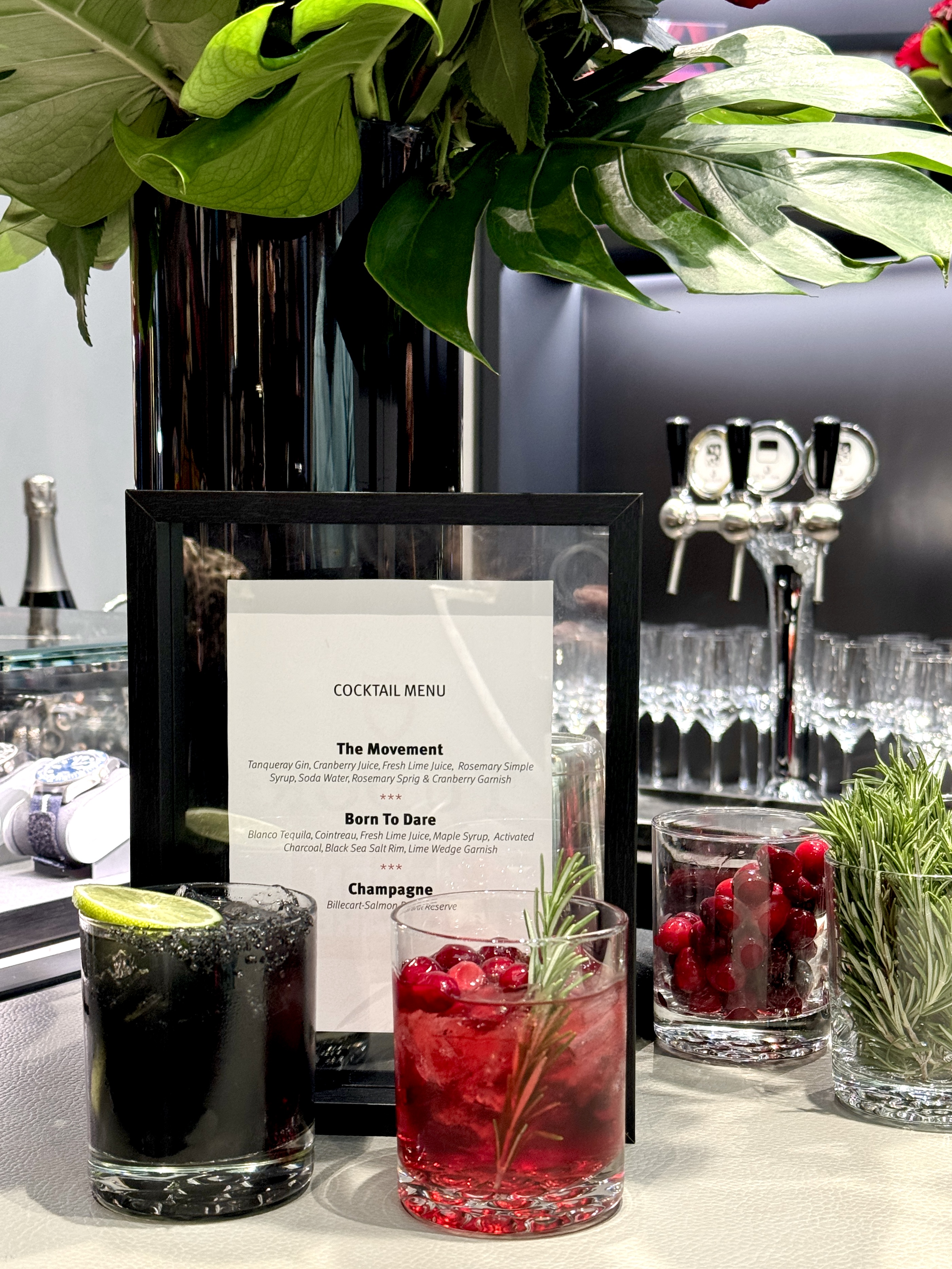 I swapped my empty champagne flute for one of the event’s signature cocktails, The Movement featuring gin, rosemary, and cranberry. An herbaceous, refreshing beverage perfect for sipping.
