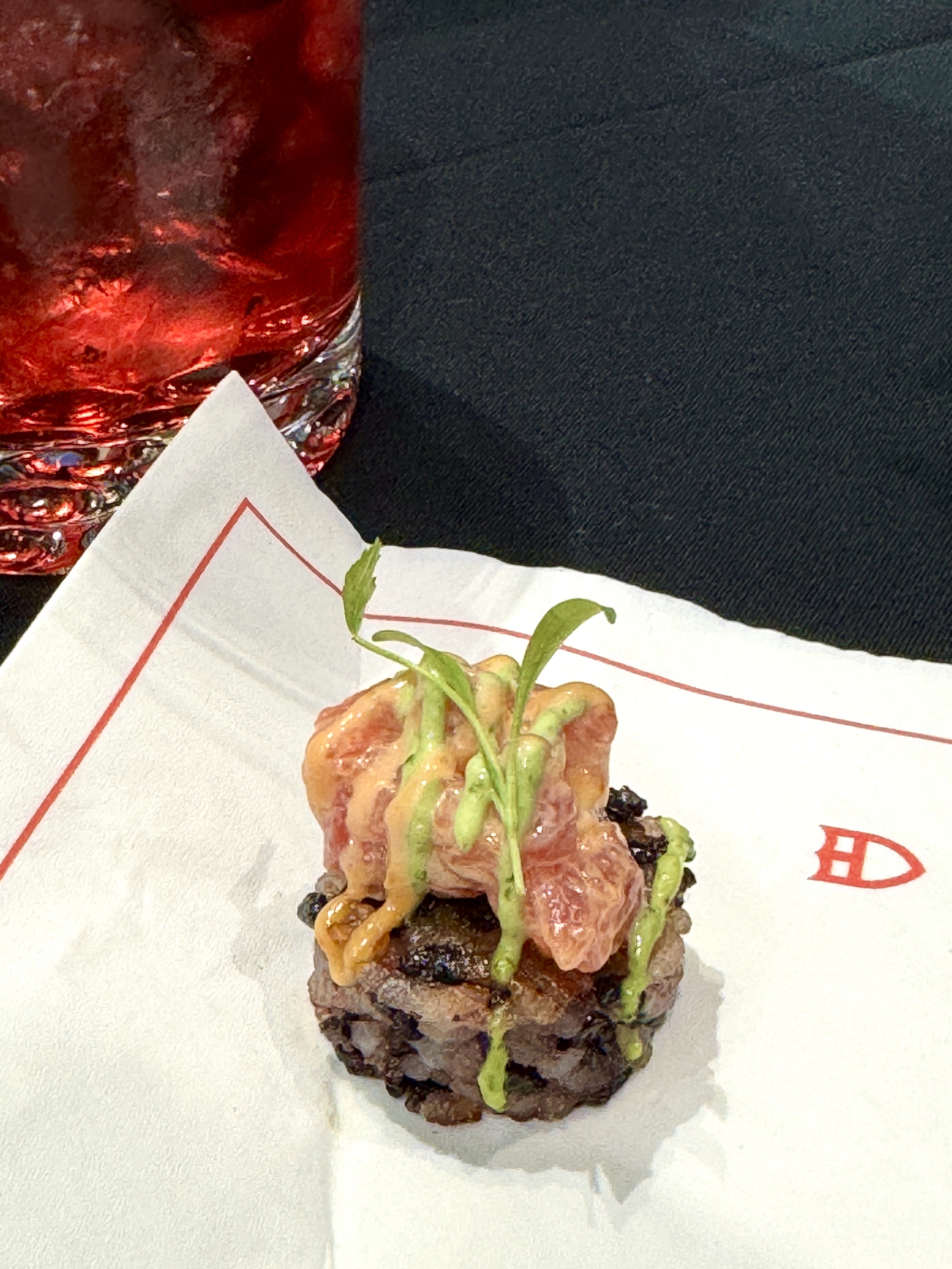 Of course, I was also excited about the nibbles. One of the standouts was tuna poke on forbidden rice topped with an avocado yuzu crema. A bright, citrusy bite.