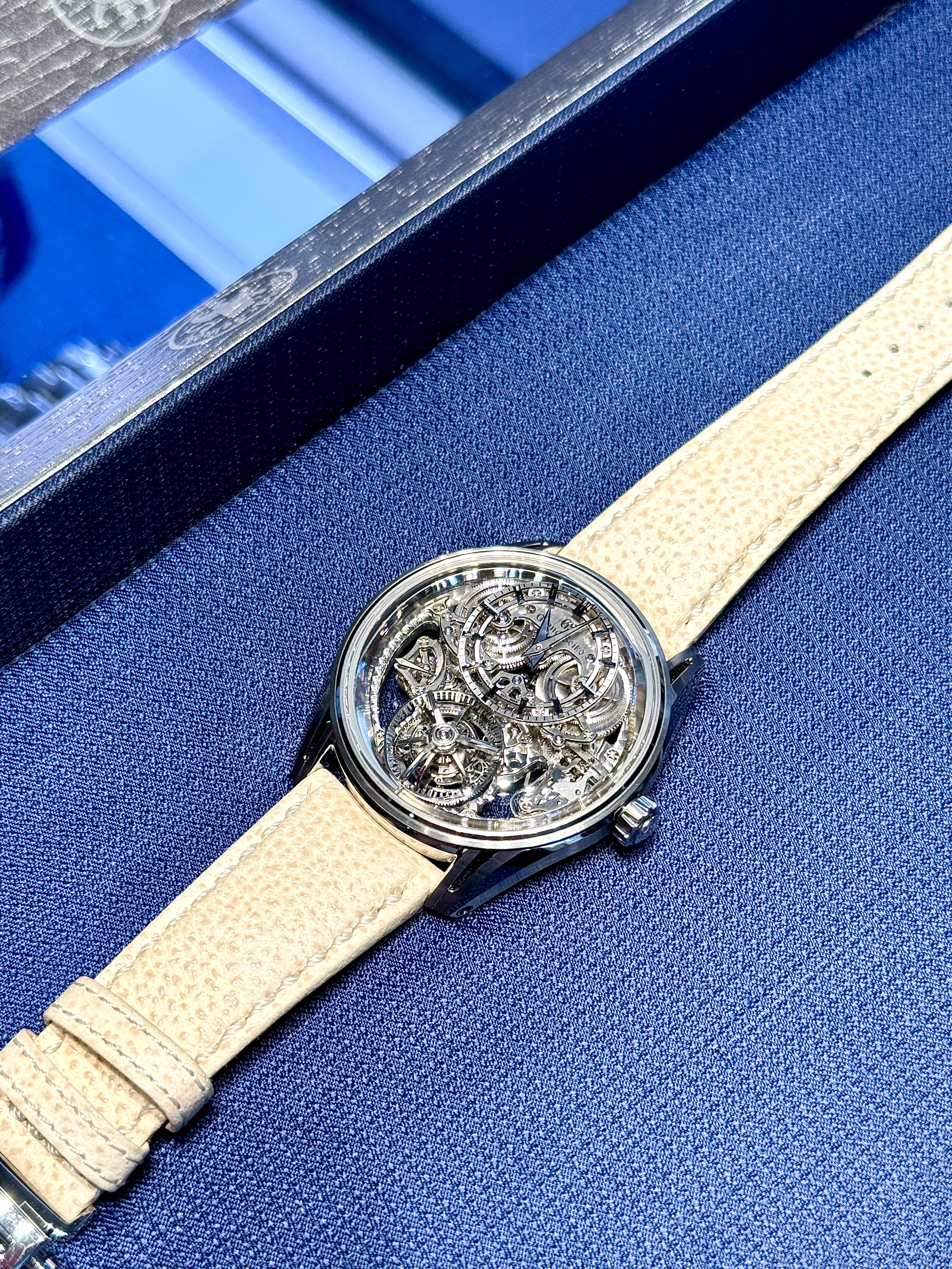 He obligingly showed us what was on his own wrist – a very special watch not on display in boutiques. Crafted by the Micro Artist Studio (think atelier within an atelier), this variation of the Spring Drive 8 Day evokes a canopy of stars.