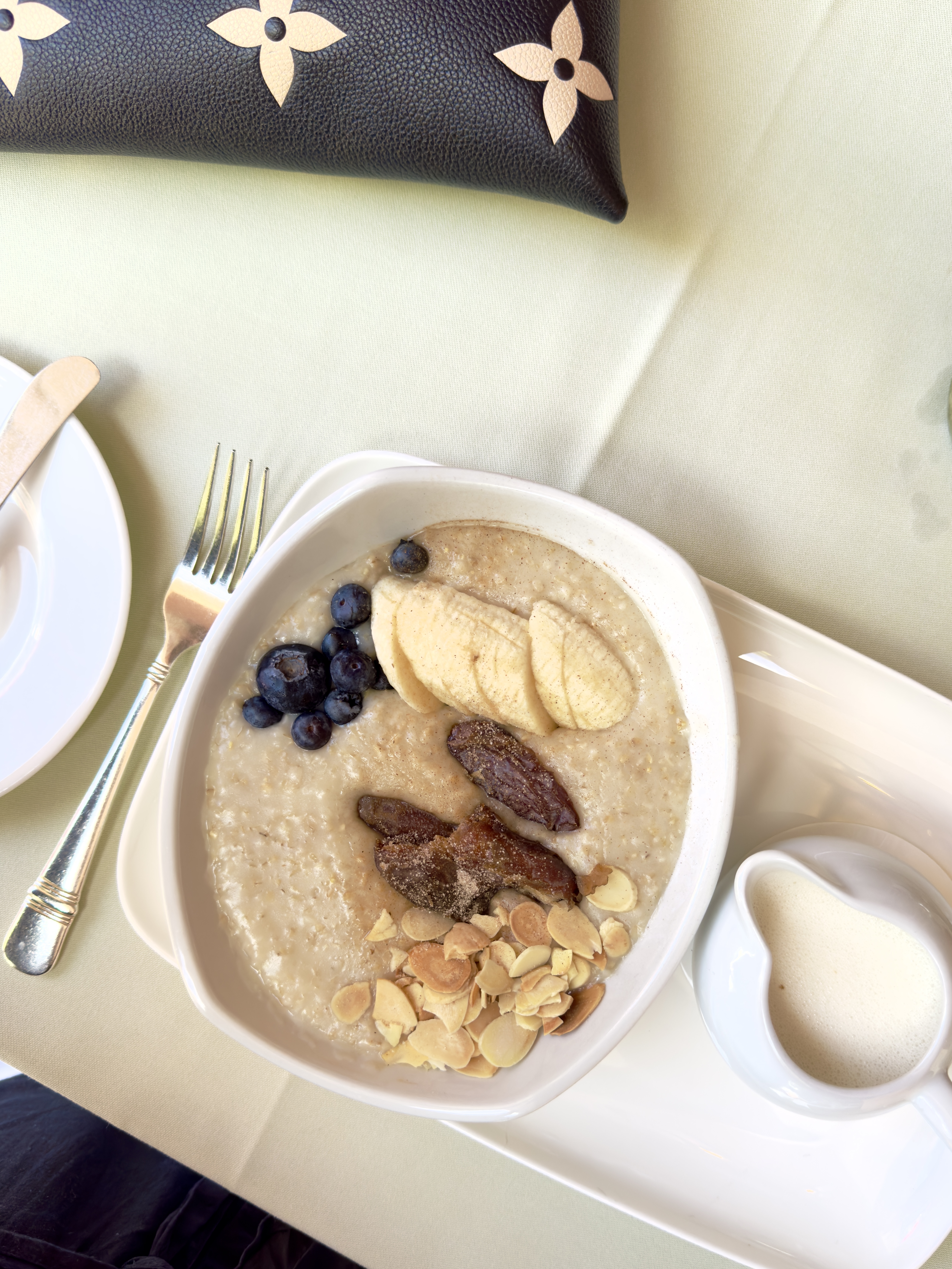 On this occasion, I opted for oatmeal sweetened with dates and chalk full of blueberries, banana, and almonds.
