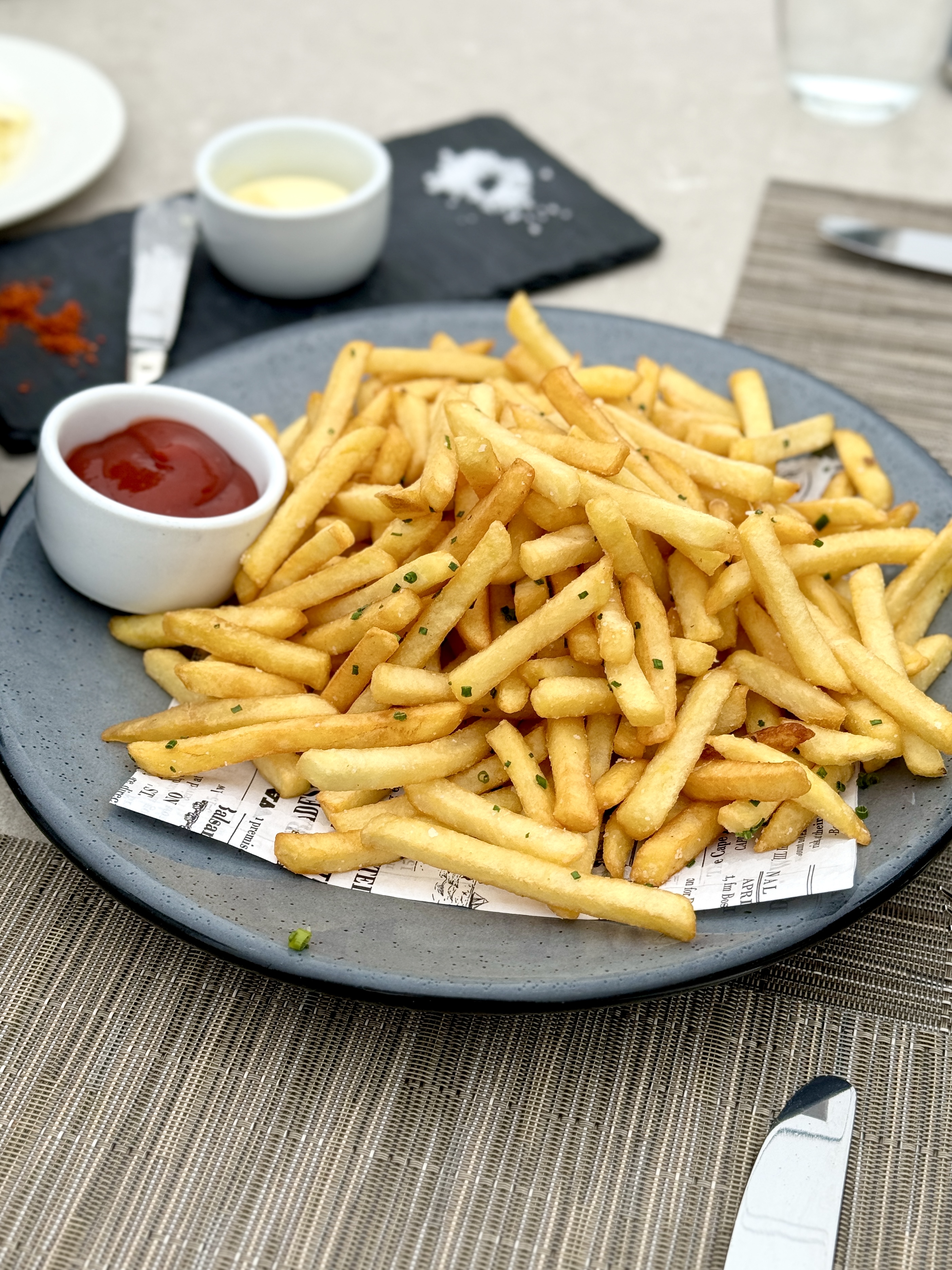 Our meal started with bread service alongside specialty salts and butter. We also split an order of Shoestring Fries for an appetizer and they were incredible.