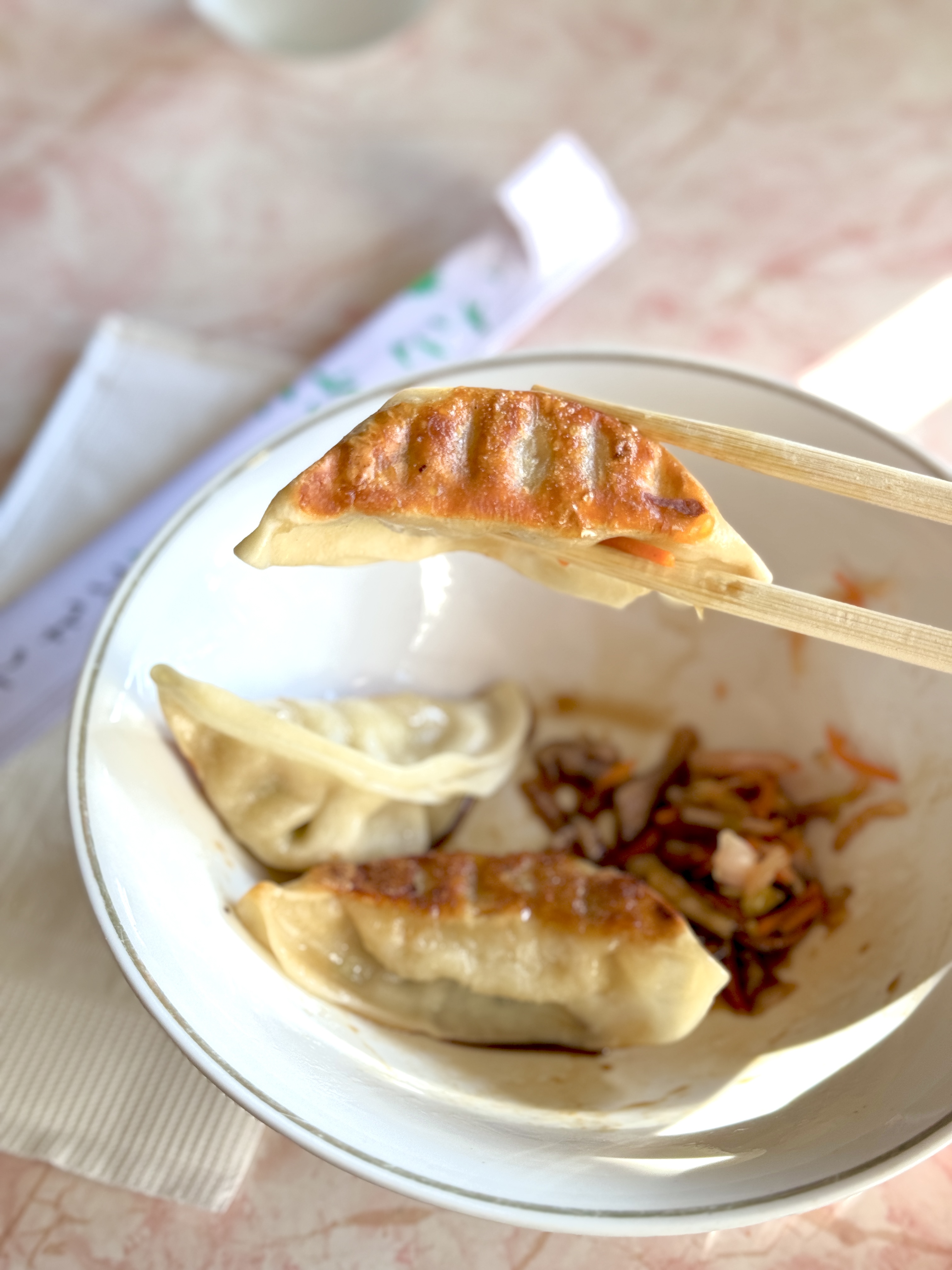 I started with an order of Chicken Pot Stickers, pan fried and served with a tangy side of pickled slaw that complimented each dumpling.