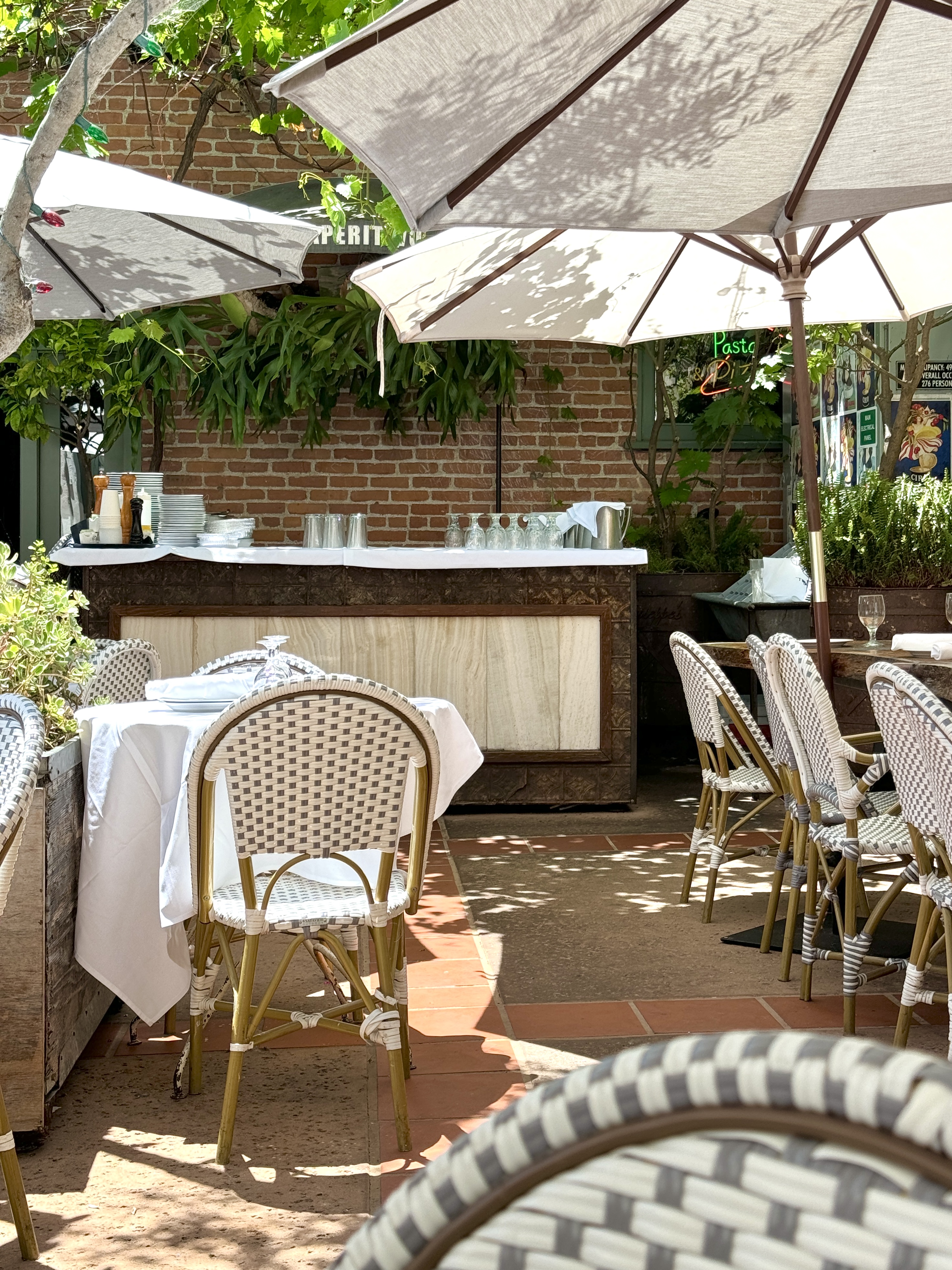 In the daytime, Giuseppe’s traded it’s warm glow and curb appeal for a hidden back patio with umbrellas and dappled sunshine.